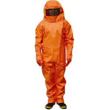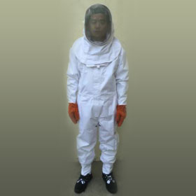 用于防蜂類(lèi)等昆蟲(chóng)侵蝕的專(zhuān)用防護,面罩為聚碳酸脂具有良好的防護性能。材料為用雙面涂覆耐腐蝕的高強度錦絲綢布為基材,制成整體連身式結構,配以獨特防蜂面具與橡膠手套及消防安全帽配套使用。
